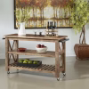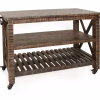 You will enjoy entertaining your friends and family and the ease in which you can do so with this amazing castered cart. Finished all the way around in our natural Distressed Brown with chatter mark detailing, this cart features two full lower shelves – one of which is slatted, and both of which are perfect for holding baskets and bottles and platters. With towel racks on either end and a spacious upper surface for prepping and serving, just roll this super Cart to wherever you want the party to happen.