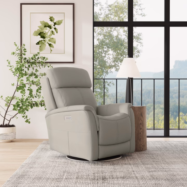 - Upholstered in premium, dove gray leather for an elevated look and superior durability