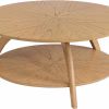 The LAX Round Blonde Coffee Table embodies mid-century modern design, making it a sophisticated addition to any living space. Crafted from durable rubberwood solids and Mindi veneers, this table features a striking starburst pattern on its surface, finished in a light blonde tone that enhances the rich wood grain and adds natural charm. Inspired by the iconic architecture of the 1960s Los Angeles control tower, the round shape of this table creates balance in any room while providing practicality with a lower shelf perfect for storing reading materials or showcasing decorative accents. Compact yet spacious, the LAX coffee table not only serves as a functional piece but also as a conversation starter, effortlessly blending style and utility in your home.