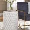 Trendsetting and contemporary. The perfect statement for your outdoor decor. Outlined honeycomb design on hammered metal is teeming with texture. Uniquely versatile size lets it serve as an accent table, plant stand or extra seating.