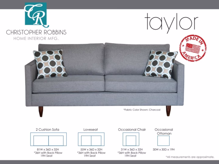 The Taylor Collection offers clean lines with mid century modern styling and your choice of customizable fabrics and seat cushions.