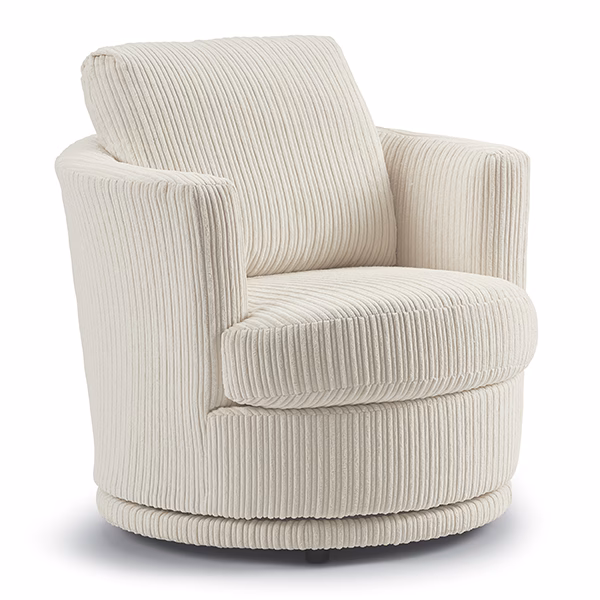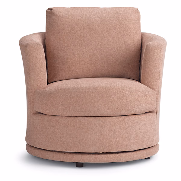 Designed with a reversible*, solid foam T-seat for long-lasting comfort and support. Plus, with zipper access in the lower back, you can adjust the amount of pillow fibers in the back to perfect your comfort sit. The swivel base comes upholstered**, or you have the option of a wooden base in 3 finish choices: Dark Walnut, Espresso, and Riverloom.